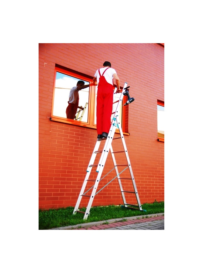 Драбина універсальна з трьома секціями, висота від 4 до 6м беруть в оренду для таких видів робіт: