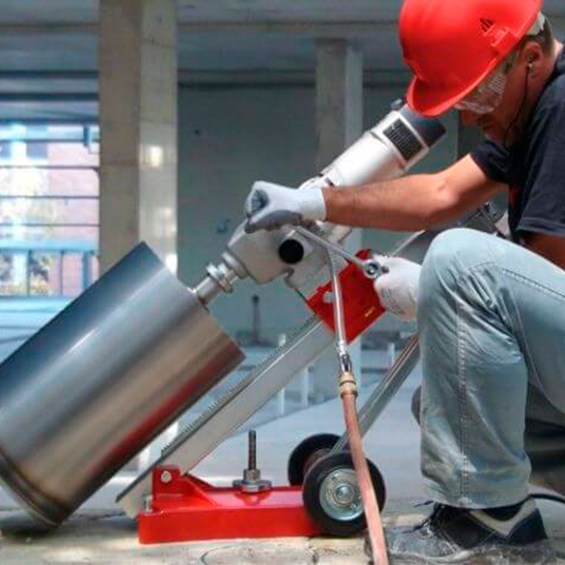 Прокат установки алмазного свердління доцільний при монтажі інженерних споруд, сантехнічного обладнання, вентиляційних систем, комунікацій зв'язку. Її мотор захищений від перепадів напруги, перевантажень і перегріву. Важливо правильно підібрати алмазну коронку, яка відповідає щільності оброблюваного матеріалу. У разі її заклинювання автоматично спрацює захисна муфта, запобігаючи травмуванню оператора. Ретельно закріпіть опорну платформу анкерами, проведіть розмітку. Запустивши установку, відрегулюйте подачу охолоджуючої рідини.