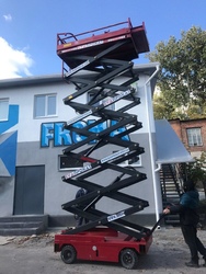 Ножичний підйомник самохідний раціонально брати в прокат для обслуговування споруд, де є тверде стаціонарне покриття: бетонне, плиткове, асфальтоване. Переднє шасі призначене для напрямку руху, а задні колеса ведучі. Силовим приводом служить електродвигун, що живиться від акумулятора. Масляний насос гідравлічної системи пускають у хід опорні штанги на шарнірах. Платформа для робіт обладнана висувним елементом. Він полегшує доступ до виступів і іншим складних ділянках нестандартного будівлі.