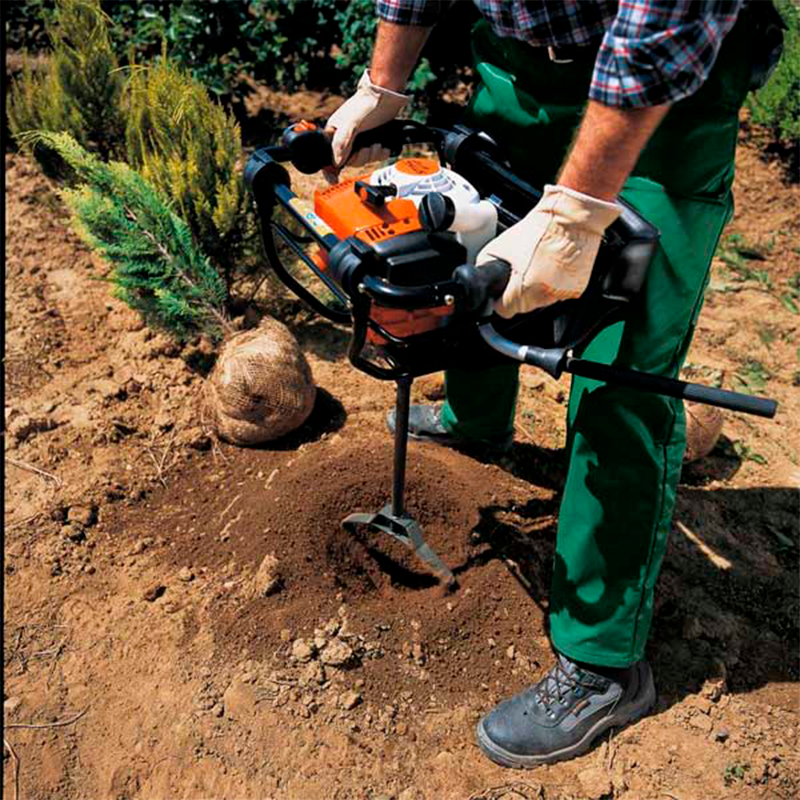 Для виконання трудомістких земляних робіт у великих обсягах оренда мотобура Stihl BT 130 буде оптимальним рішенням з мінімальними витратами. Цей легкий апарат призначений для того різання отворів в різною по щільності грунті. Він затребуваний при посадці виноградників, садових дерев, нових лісових масивів. З його допомогою можна брати проби грунту і підготувати стовпчасті фундаменти для будівництва невеликих споруд: навісів, парканів, теплиць, альтанок, парників.